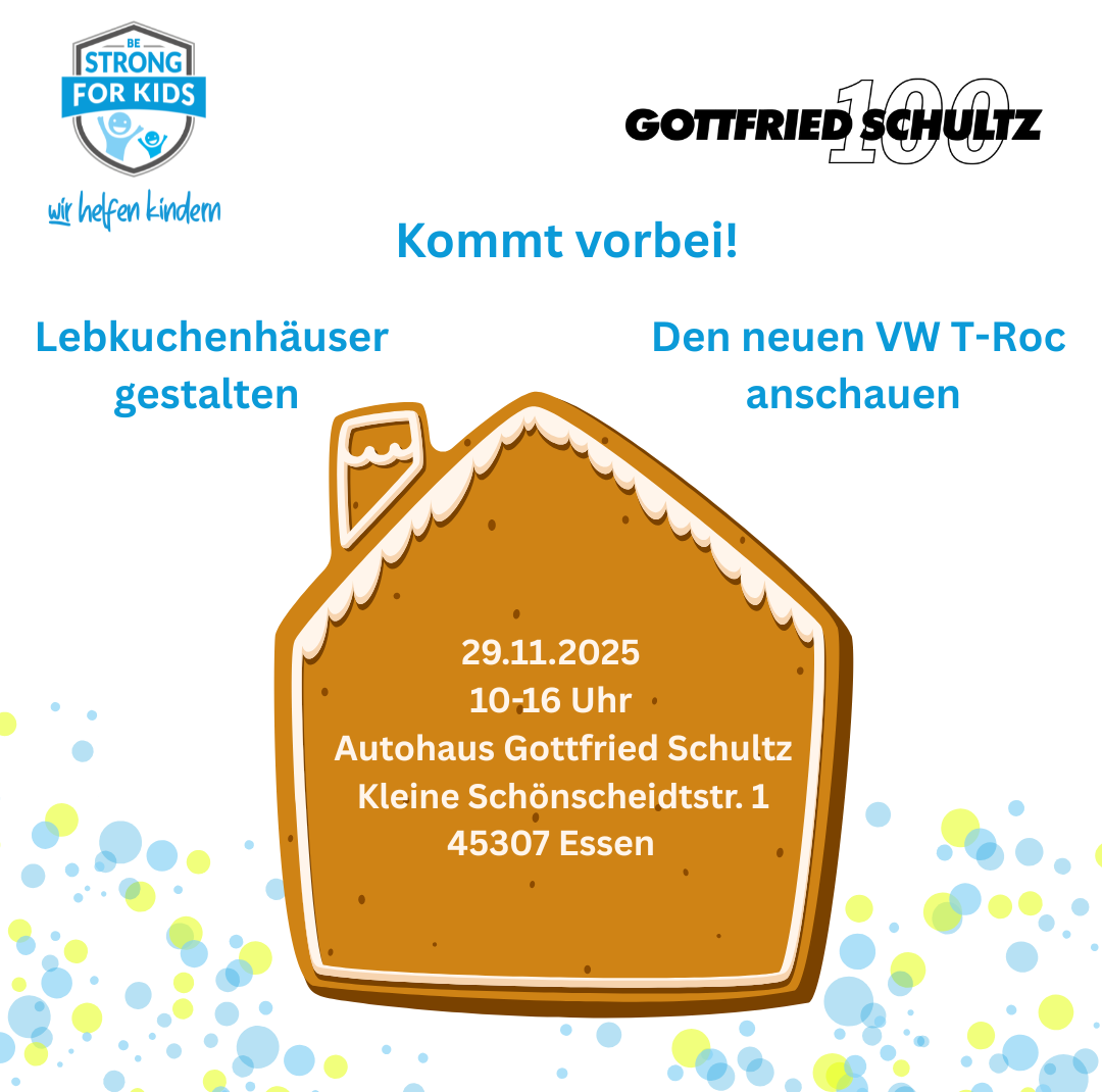 Am 29.11. könnt ihr im Autohaus Gottfried Schultz, während der Präsentation des neuen VW T-Roc, mit uns Lebkuchenhäuser bauen, verzieren und naschen.